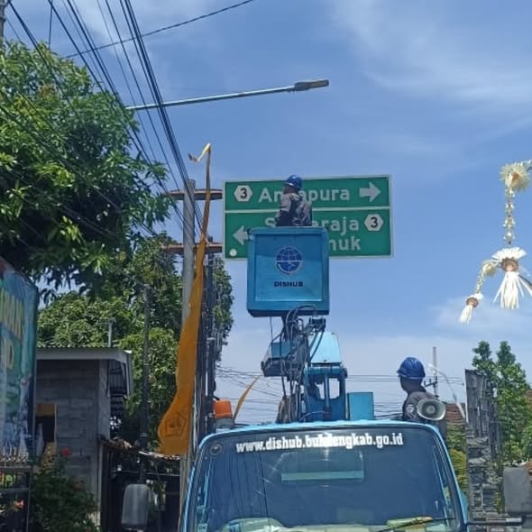 Dinas Perhubungan Kabupaten Buleleng melalui Tim Perlengkapan Jalan Umum (PJU) melaksanakan kegiatan perbaikan penerangan jalan pada ruas Jalan Desa Tunjung, perbaikan line atau kabel putus di Jalan Samratulangi, serta penanganan konsleting lampu PJU di kawasan Desa Kerobokan (Kloncing).