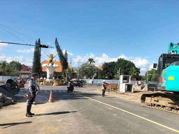 Dinas Perhubungan (Dishub) Kabupaten Buleleng melaksanakan pengaturan dan pengawasan arus lalu lintas secara intensif di kawasan Titik Nol Kota Singaraja, tepatnya di sekitar Tugu Singa dan Rumah Jabatan Bupati Buleleng, pada Minggu (5/4/2026).