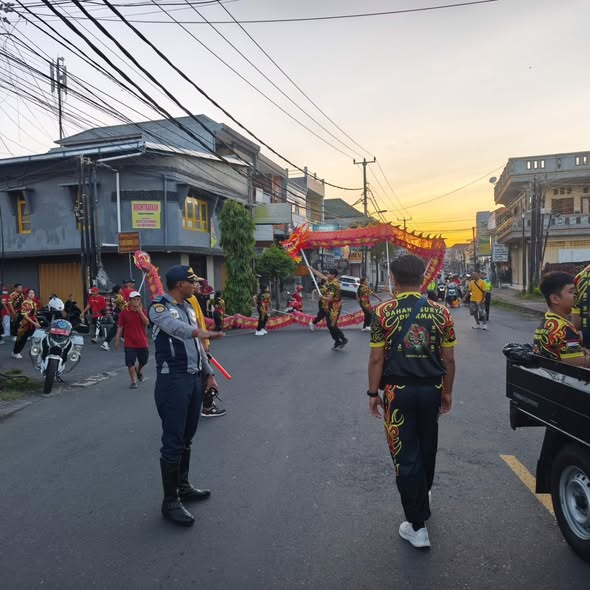 Dinas Perhubungan Kabupaten Buleleng melaksanakan pengaturan dan pengamanan arus lalu lintas dalam rangka kegiatan jalan santai memperingati Hari Bertatahnya Yang Mulia Konco Seng Hong ke-117 yang dipusatkan di T.I.T.D Seng Hong Bio, pada Minggu (12 April 2026).