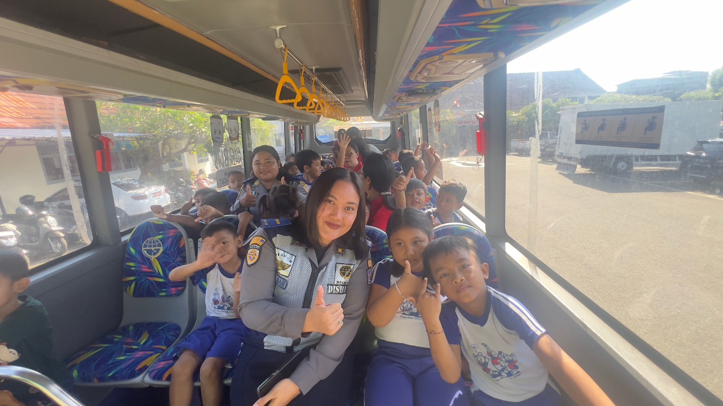 Sebagai bagian akhir kegiatan, para siswa berkesempatan berkeliling kota menggunakan bus sekolah milik Dishub Buleleng. Kegiatan ini tidak hanya memberikan pengalaman baru bagi anak-anak, tetapi juga memperkuat pemahaman mereka terhadap pentingnya keselamatan dalam berlalu lintas.