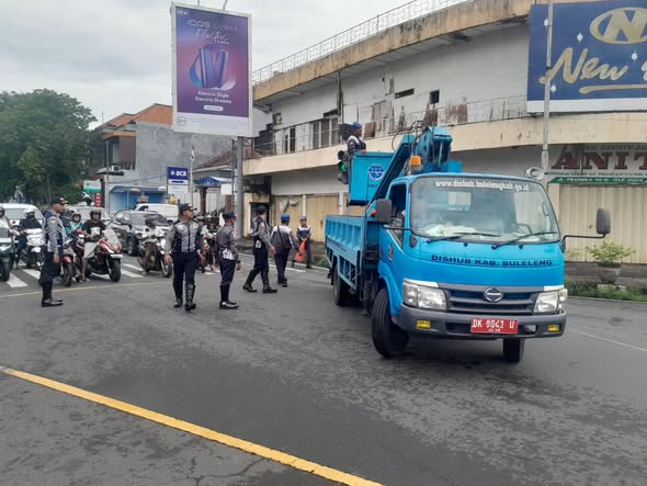 Dishub Buleleng Amankan Arus Lalu Lintas di Simpang Wijaya Selama Perbaikan PJU