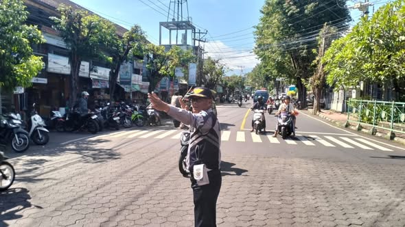 Petugas Dinas Perhubungan disiagakan di sejumlah titik strategis guna melakukan pengaturan lalu lintas serta memberikan arahan kepada masyarakat pengguna jalan. Berdasarkan hasil pemantauan, kondisi arus lalu lintas terpantau cukup ramai, namun tetap berjalan lancar dan terkendali.