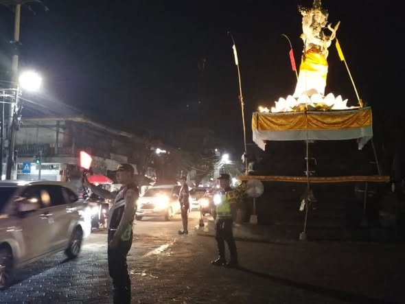 Dishub Buleleng Laksanakan Pengamanan dan Pengaturan Lalu Lintas Gladi Parade Ogoh-Ogoh di Simpang Catus Pata